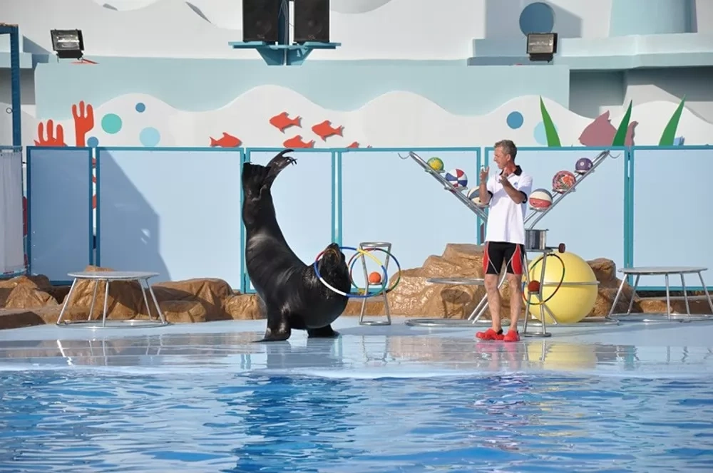 В представлении вы увидите: обаятельных морских котиков Агат и Смелая, морского льва Димас, веселую тройку черноморских дельфинов и познакомитесь с моржихой по имени Лила.