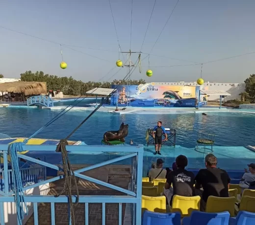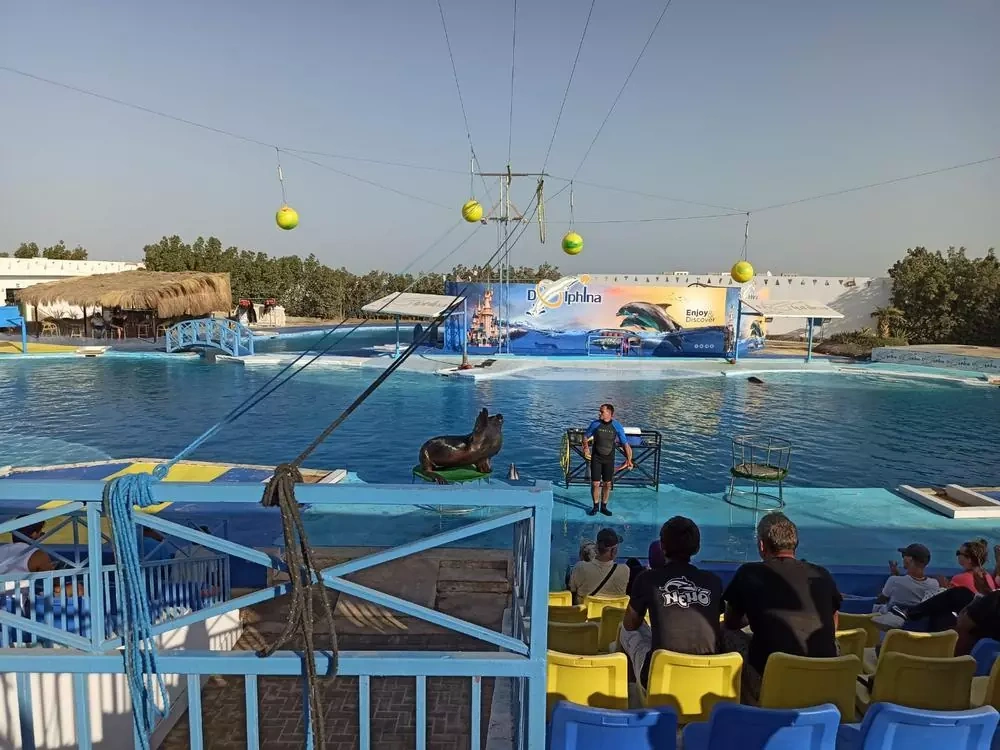 Долгое время как жители Хургады, так и не раз приезжающие отдохнуть в гостеприимный город туристы ждали открытия ДЕЛЬФИНАРИЯ!!! И вот это свершилось!!! ДЕЛЬФИНАРИЙ был открыт 6 апреля 2011 года в Макади (пригород Хургады). Это один из самых современных дельфинариев в мире.  При его строительстве соблюдены все нормы по содержанию млекопитающих. В дельфинарии всегда находятся профессиональные инструкторы,  специалисты по уходу за морскими животными, ветеринары… У Вас появилась уникальная возможность во время Вашего отдыха познакомиться с дельфинами и другими морскими животными. Вы увидите шоу представление с дельфинами, морскими котиками и львами, моржами! Выступления этих животных не оставят равнодушными никого! Это настоящий праздник для взрослых и детей! И особо интересно это будет посмотреть, конечно, детям.