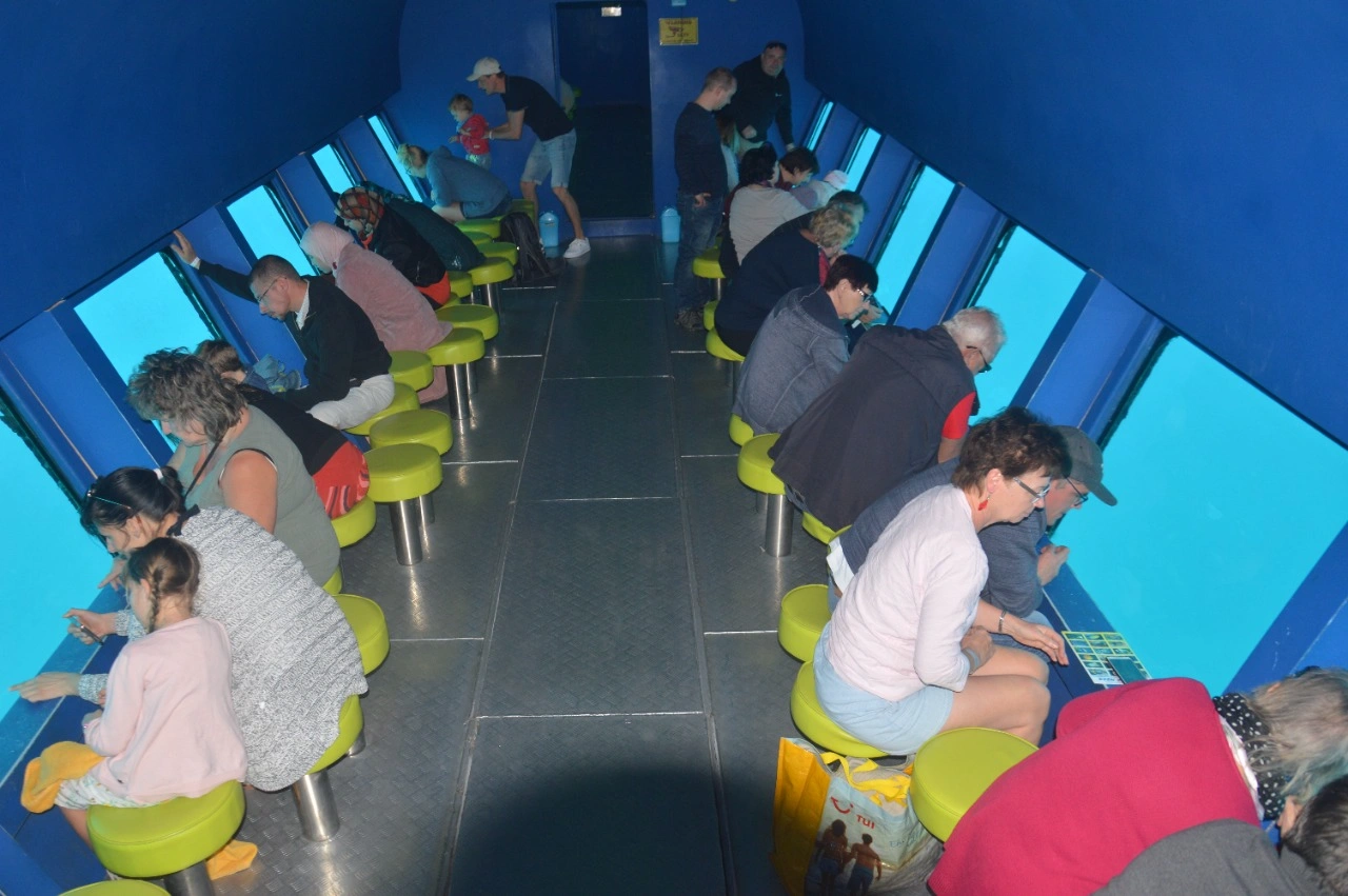 Все лодки оборудованы  кондиционерами и удобными сидениями. На всех из них смотровые стекла расположены по обе стороны. Помимо того, что Вы увидите этот красочный подводный мир, у Вас еще есть возможность и самим поплавать в открытом море ( время Вам дается для этого). Ласты, маски, трубки — все это предоставляется в Ваше распоряжение.