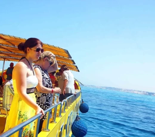 Около 9 утра или часа дня трансфер заберет вас у ворот отеля и отвезет на пристань с яхтами. Где вы пересядете на желтую двухпалубную яхту, вместимостью до 40 или 60 человек (зависит от модели судна).